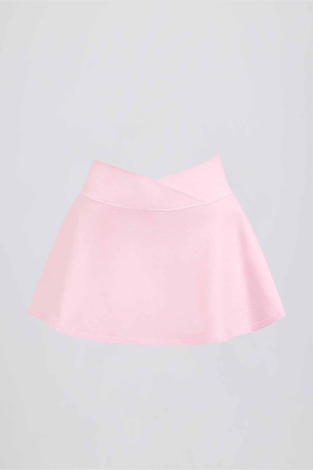 Brushed Jersey Crossover Mini Skort in Pale Pink Marl