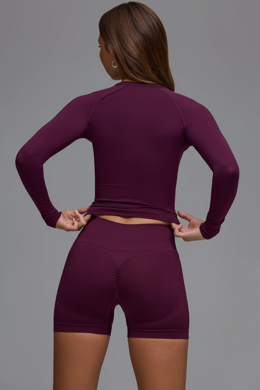 Active comfort. Designed to take you through medium-impact workouts and rest days, these shorts are crafted from our breathable Define Luxe fabric that boasts moisture-wicking and compressive properties. They’re set on a high-waist micro-rib waistband for enhanced support and feature glute-enhancing panelling and ruching that defines your shape. The Bo&Tee logo at the back is a signature finishing touch.