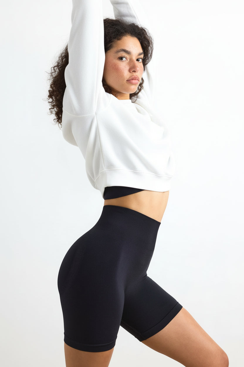 Sculpting staples. Crafted from our lightweight and seamless Define Luxe fabric, these biker shorts are super smoothing to provide ultimate second-skin comfort. They’re cut to a flattering mid-thigh length and feature signature ruching as well as micro-rib panelling at the back that subtly accentuates and lifts the glutes.