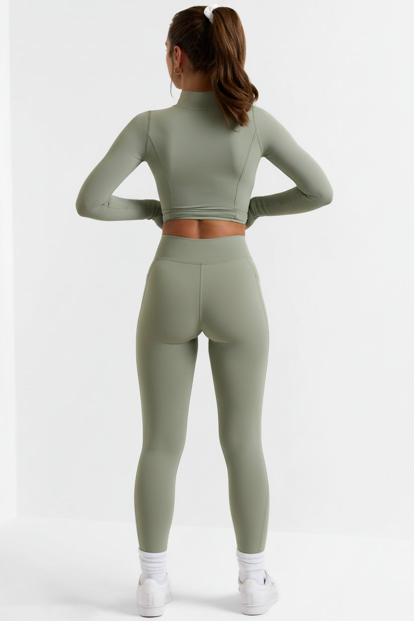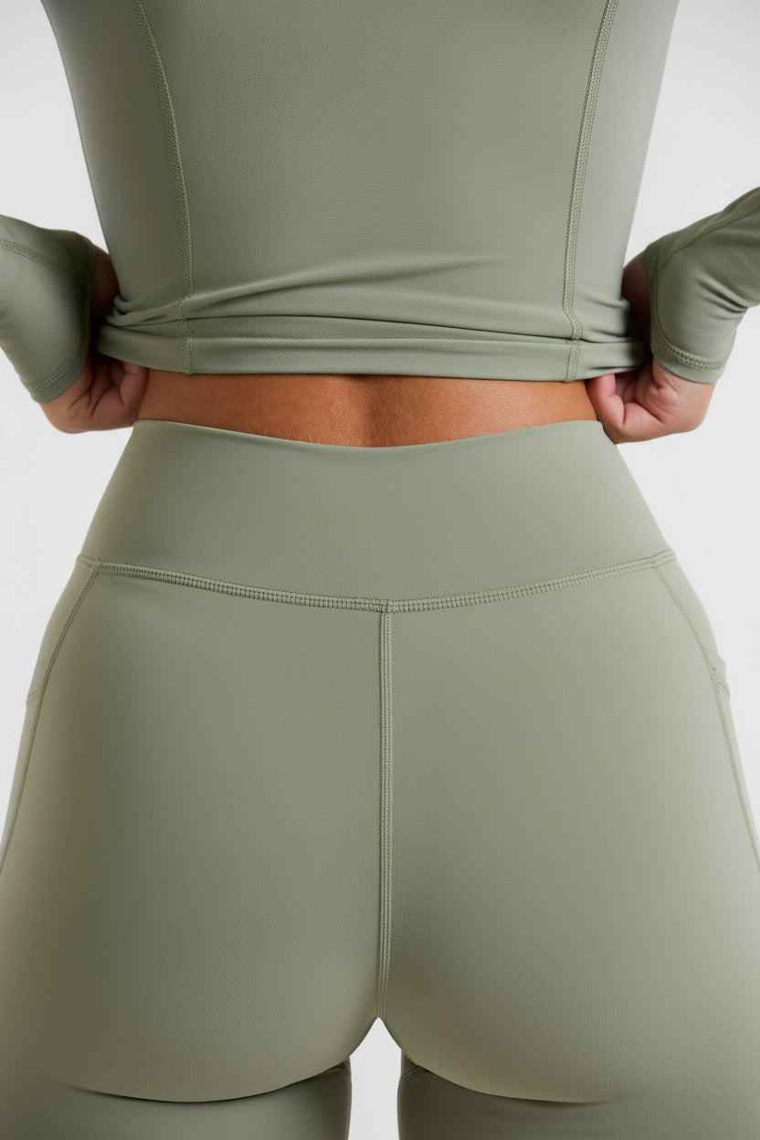 Full Length Leggings with Pockets in Bamboo Green