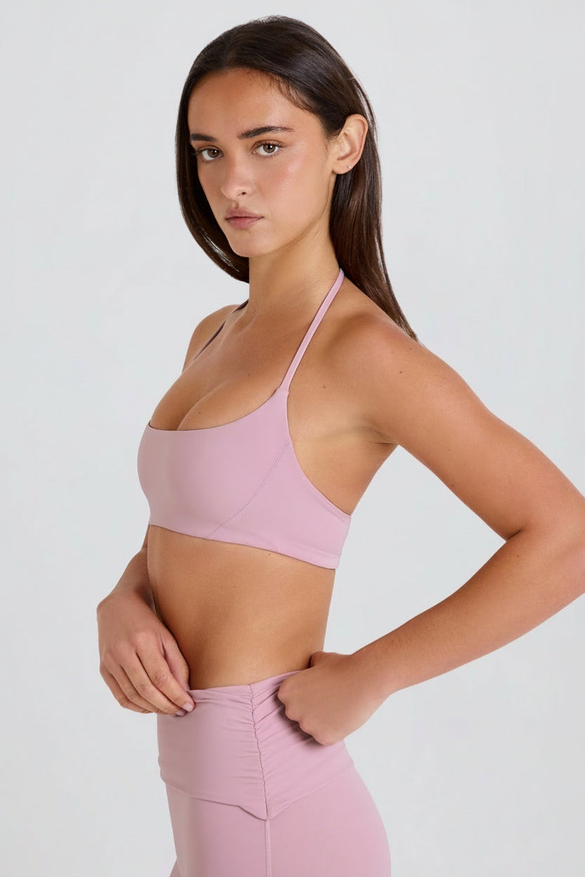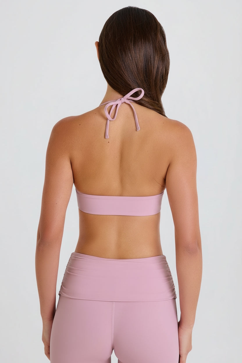 Scoop-Neck Halterneck Sports Bra in Mauve
