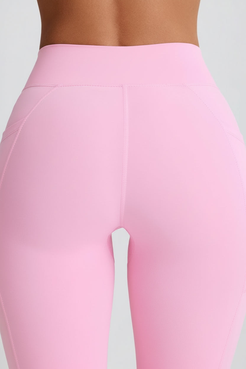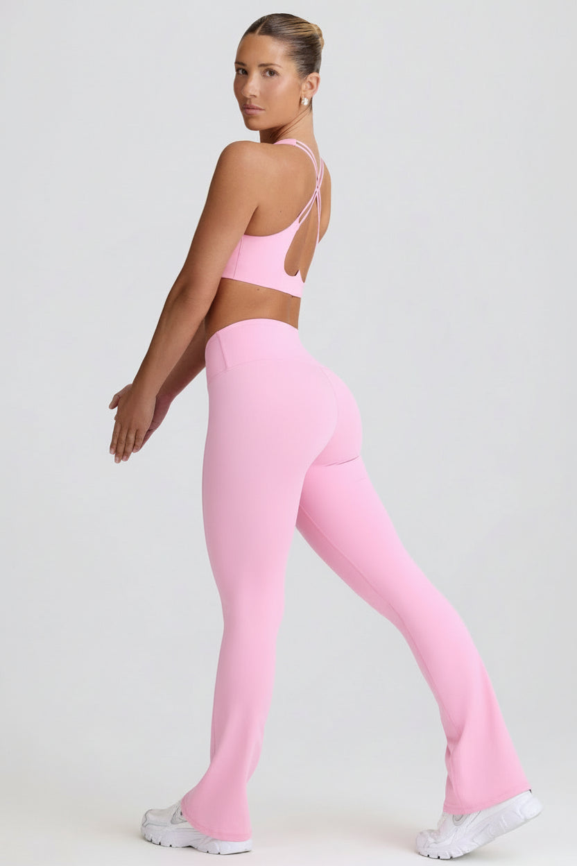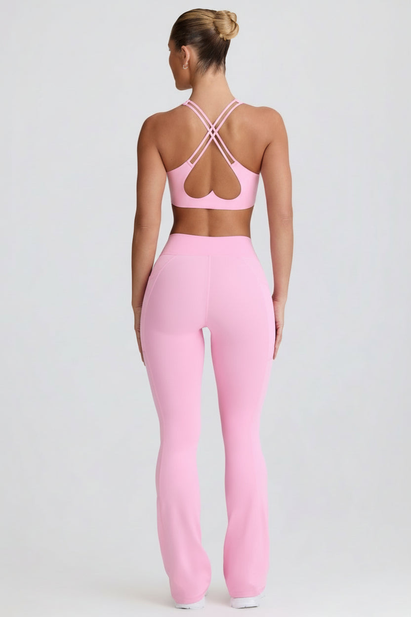 Soft Active V-Waist Pocket Flared Leggings in Baby Pink