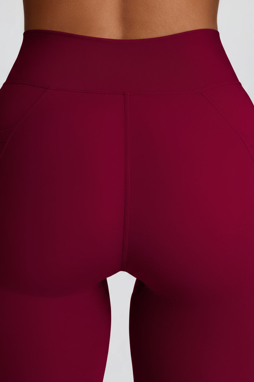 Soft Active V-Waist Pocket Flared Leggings in Burgundy