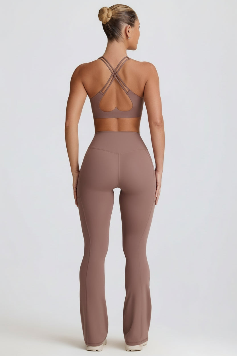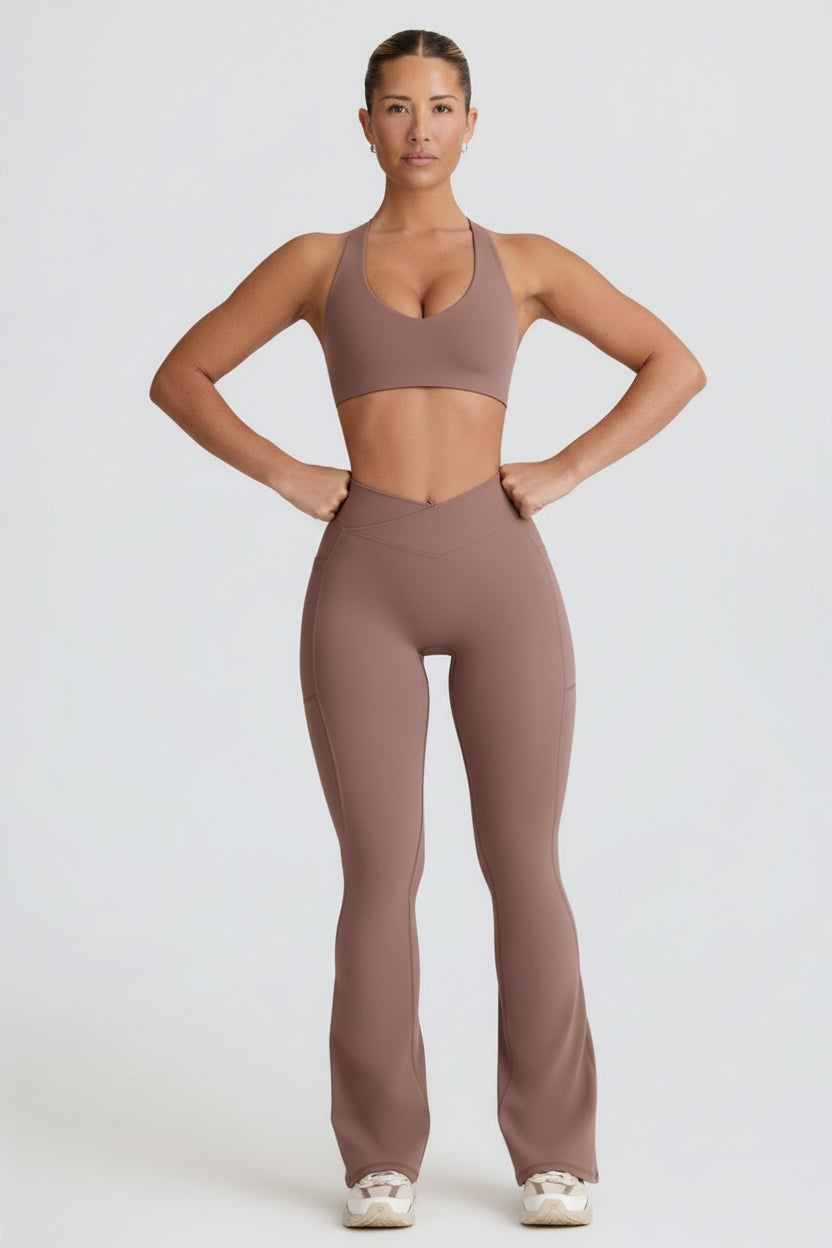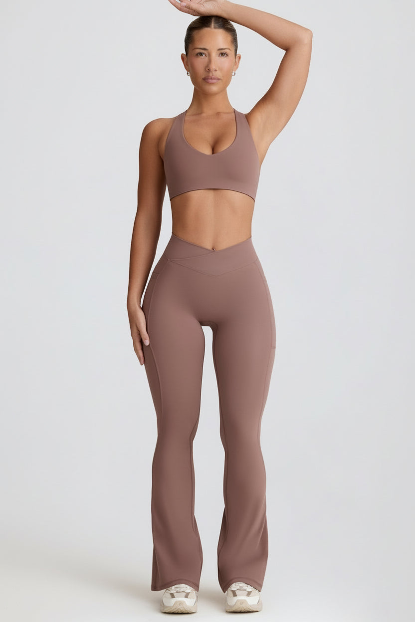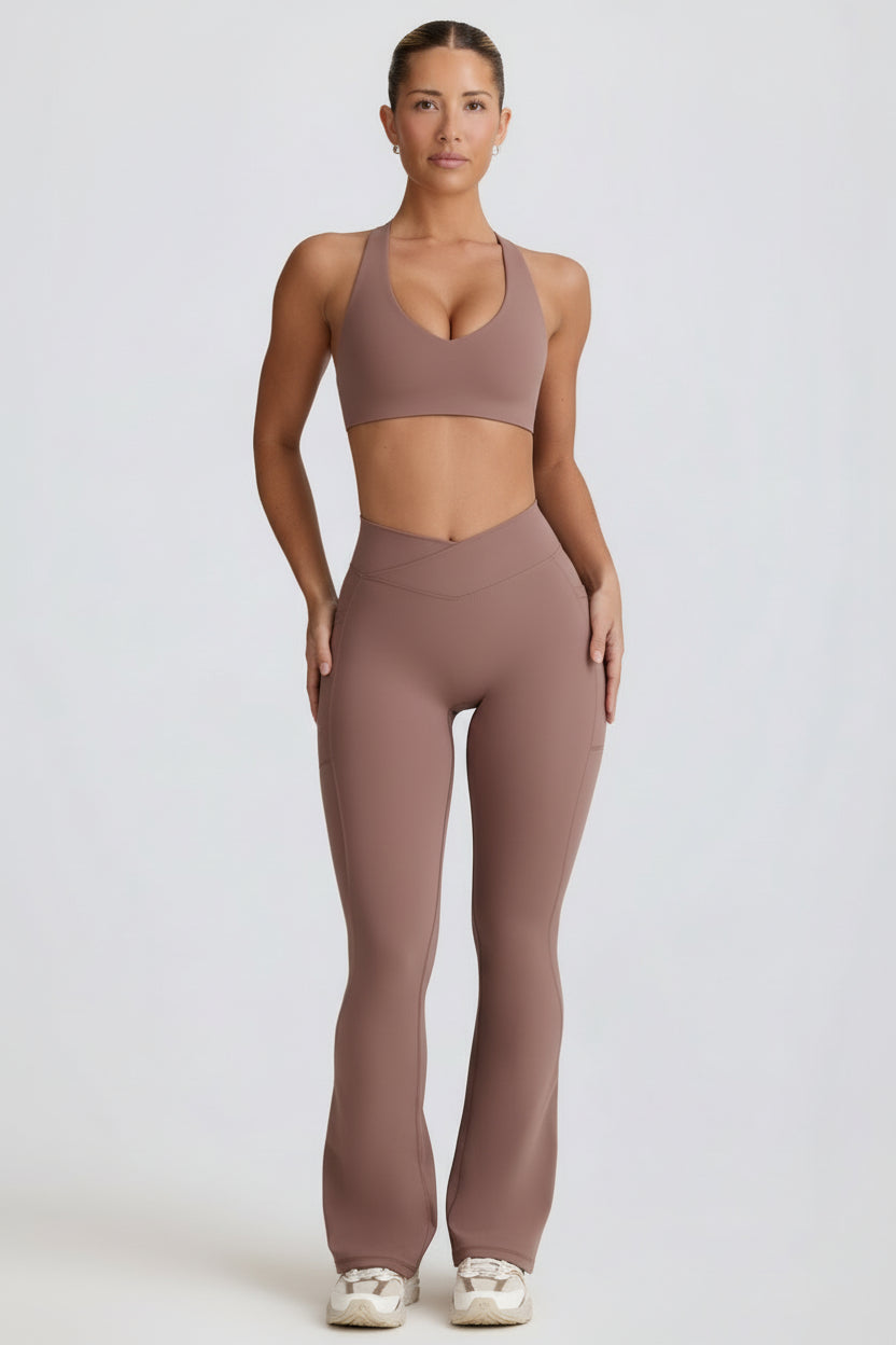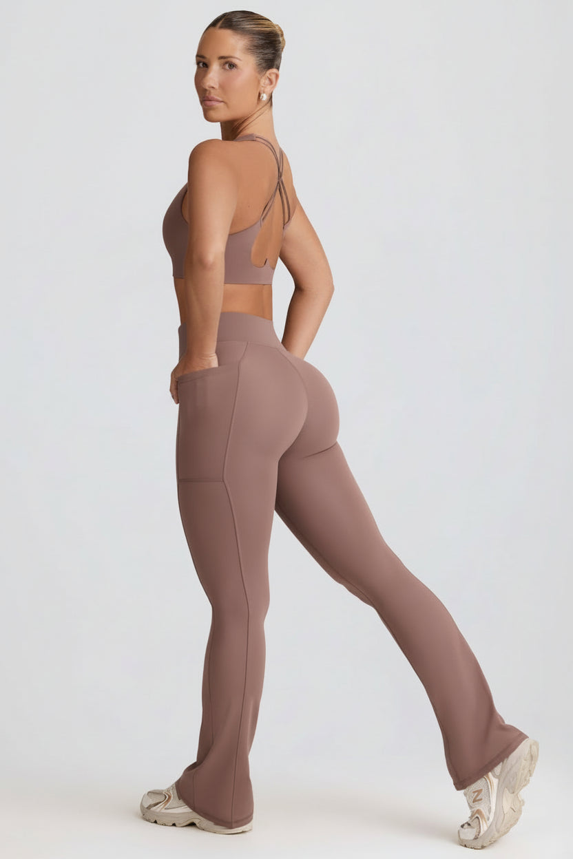 Soft Active V-Waist Pocket Flared Leggings in Mocha