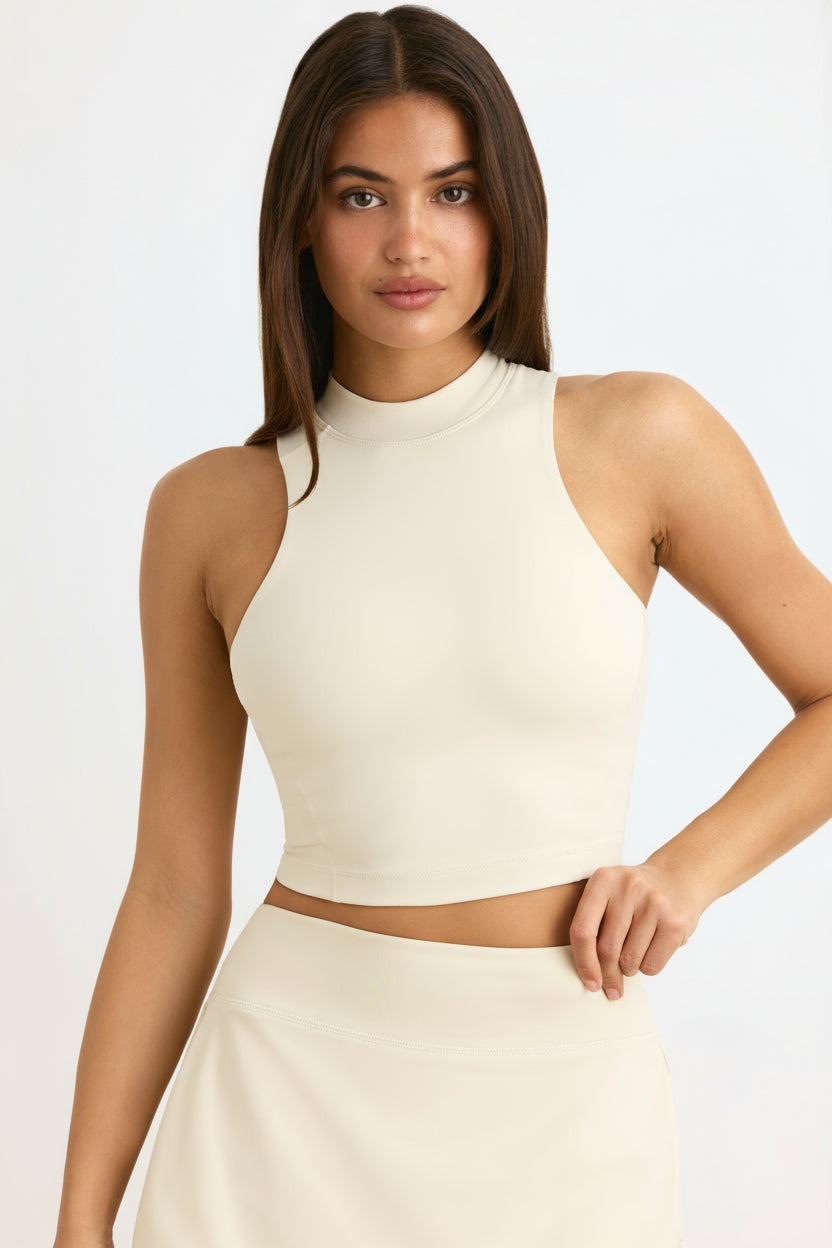 Made for movement. Combining comfort and functionality, this top is crafted from our signature Soft Active fabric with lightweight, breathable, and moisture-wicking properties. It’s cut to a high-neck silhouette with a second-skin feel and features an inbuilt non-padded shelf bra for light support.