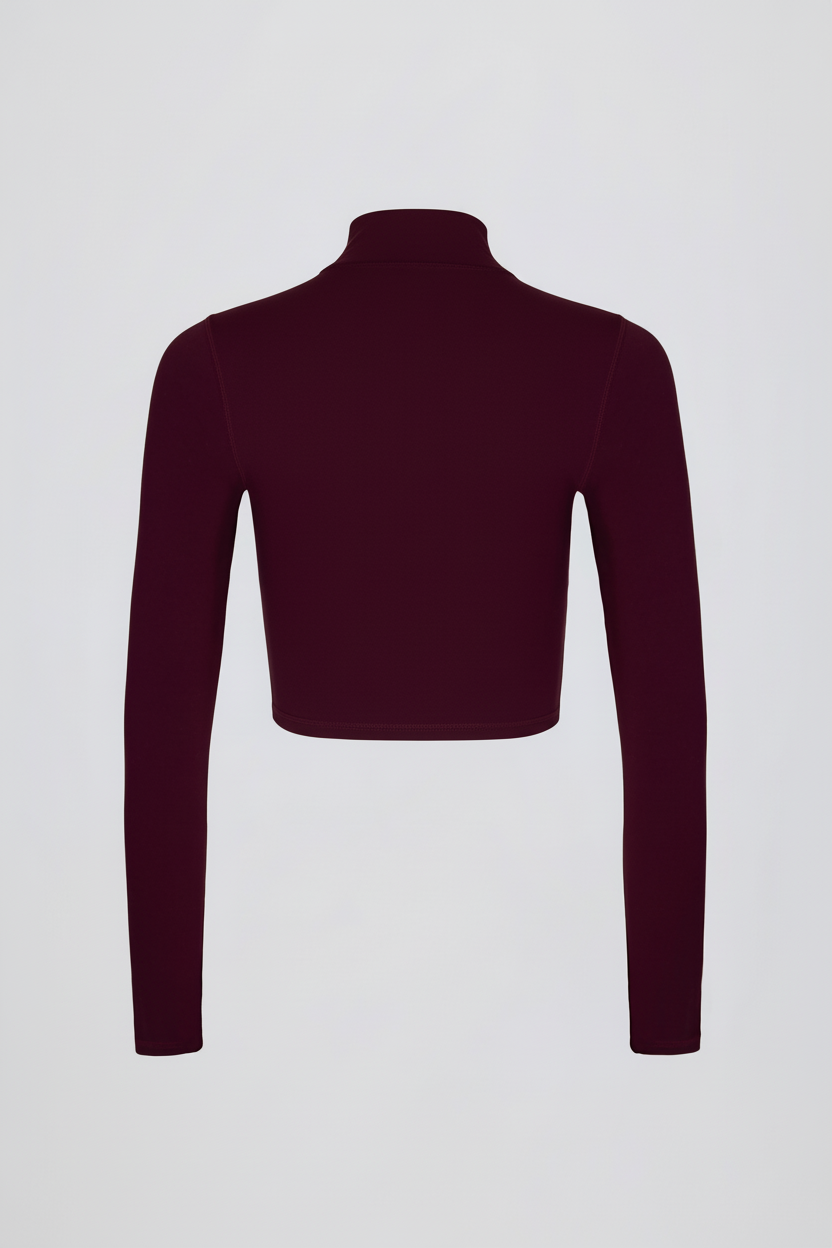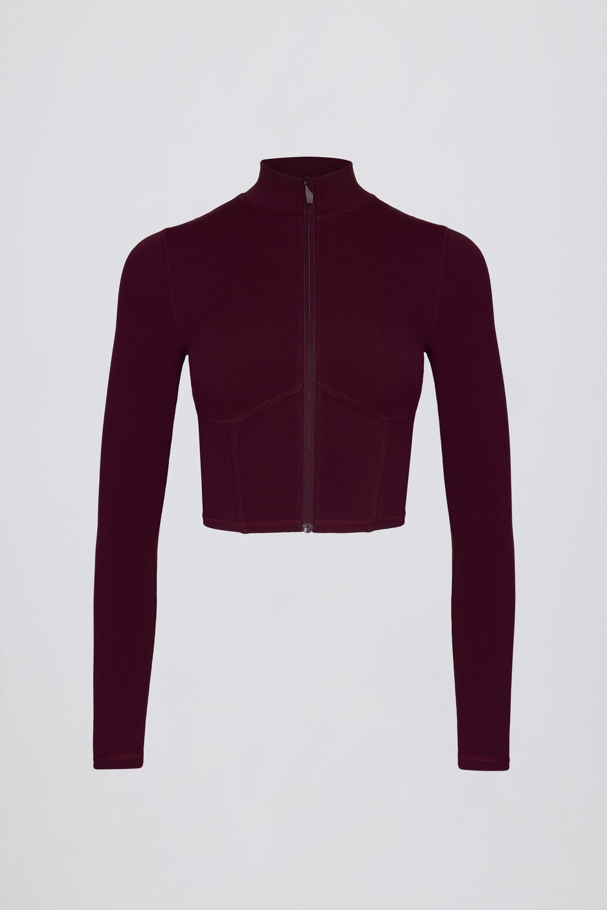 Soft Active Zip-Up Cropped Jacket in Burgundy