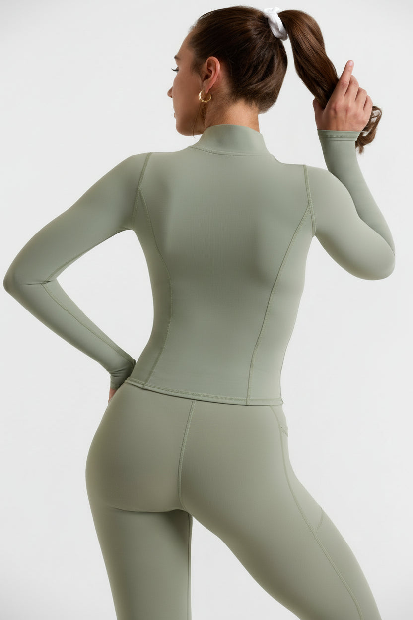 Soft Active Zip-Up Jacket in Khaki
