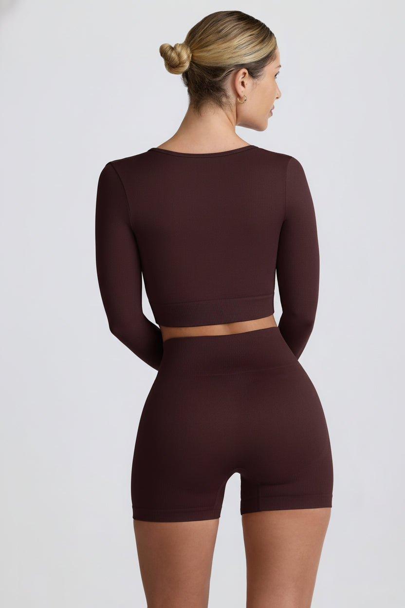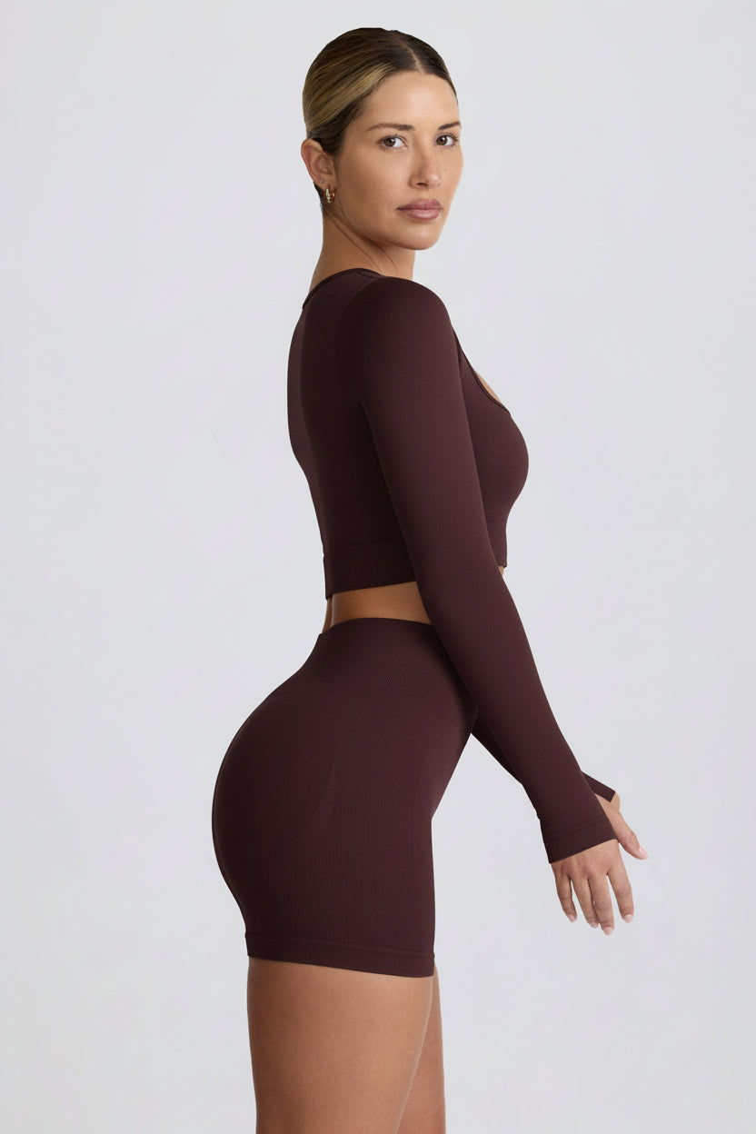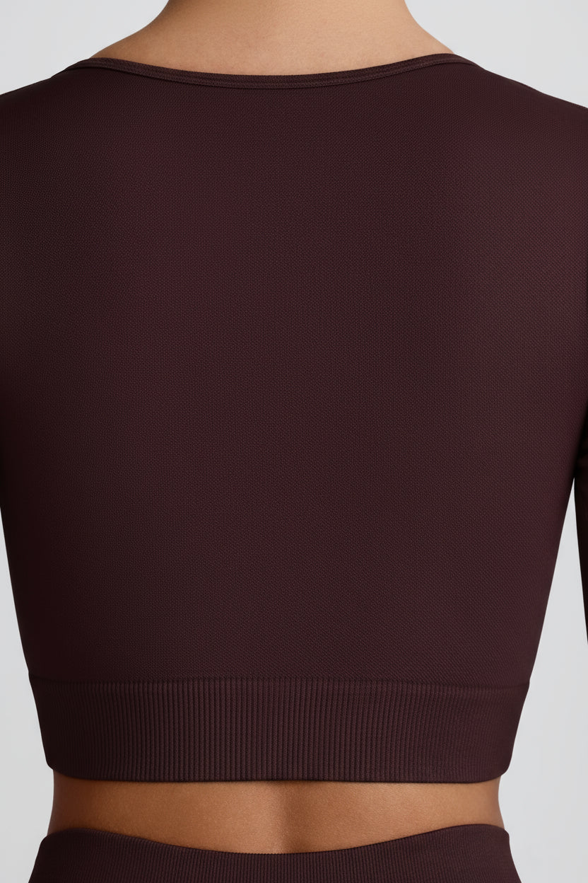 Super Sculpt Seamless Long-Sleeve Crop Top in Chocolate