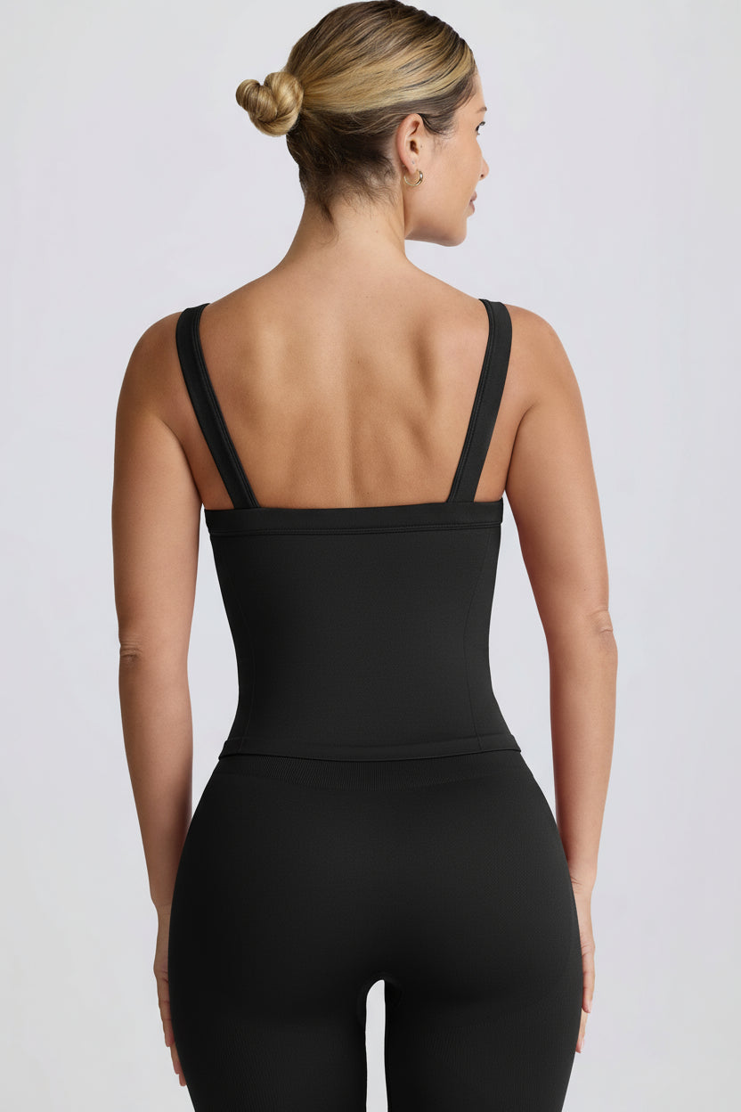 Sculpting support, superior comfort. The perfect foundation for functional gym looks, this seamless tank top is cut to a longline silhouette. It’s crafted from our bestselling, four-way stretch Super Sculpt fabric that’s moisture-wicking, breathable and compressive for all-day comfort and is elevated with contouring panels at the underbust and sides, to create a cinched hourglass shape.